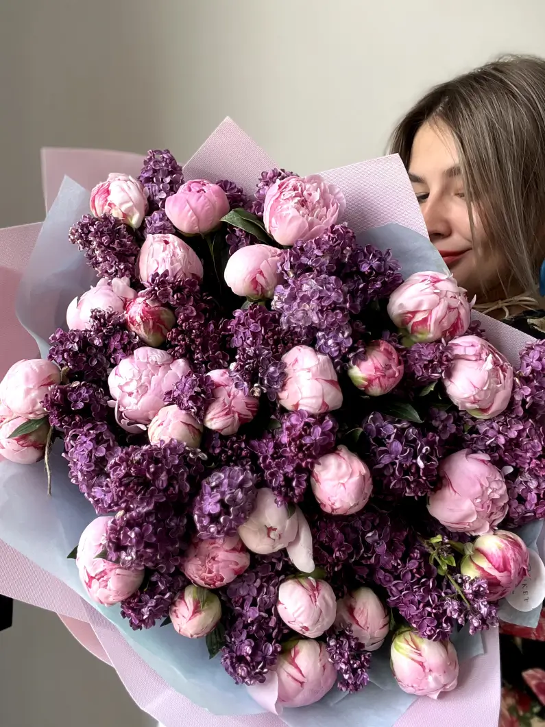 Букет из пионов и сирени – удивительное сочетание цветов, которые напоминают о весне. Роскошная комбинация пышных бутонов и милых фиолетовых соцветий создает особую атмосферу. Очаровательная цветочная композиция способна удивить и порадовать близкого человека. Станет отличным романтичным сюрпризом.