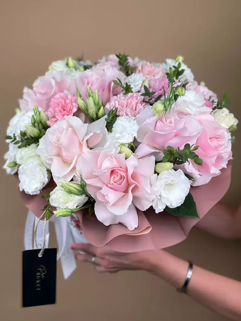Аккуратная, нежная композиция, очень грамотно подобраны цветы, смотрится гармонично. Я очень довольна, спасибо магазину!