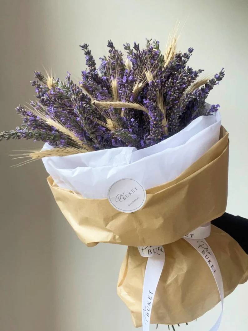 Состав: подсолнухи — 15 шт, лаванда — 3 пучка.
